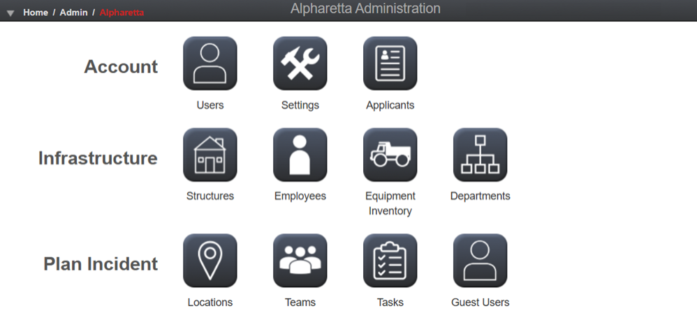 Jurisdictions contain many of the modules and features found elsewhere in Crisis Track, such as the Teams and Tasks modules. Account administrators can view and manage data in the account and each jurisdiction, and they can add jurisdiction administrators and users to jurisdictions. The modules that are available under Administrative Functions are: