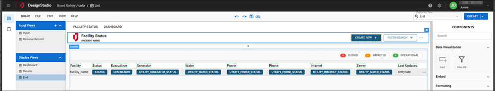 The filter criteria you specify in DesignStudio displays for the user to filter the List view in WebEOC.