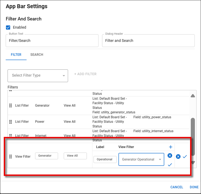 When viewing the board, you can click the Filter/Search button and filter on each generator status as needed.