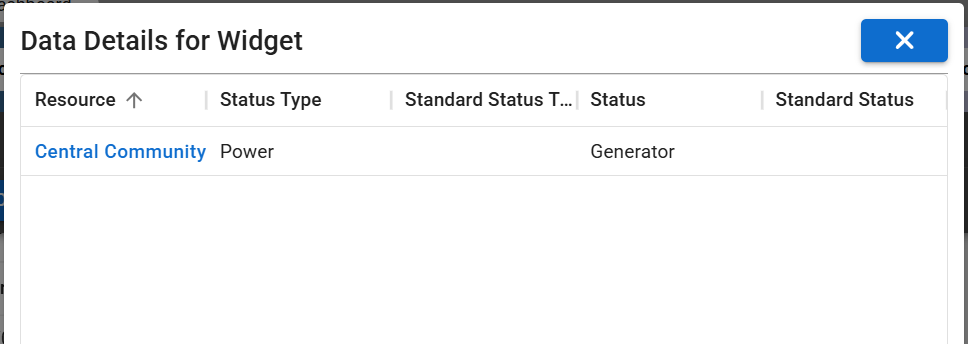 This dashboard widget displays a color-coded key performance indicator for the selected Multi status type and resource group/type. For example, the number of hospitals with power failures in the state. You can display this data as a box or bars: