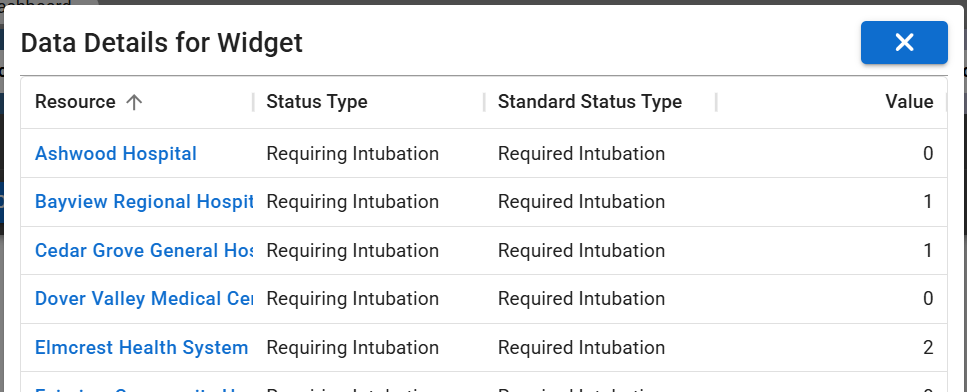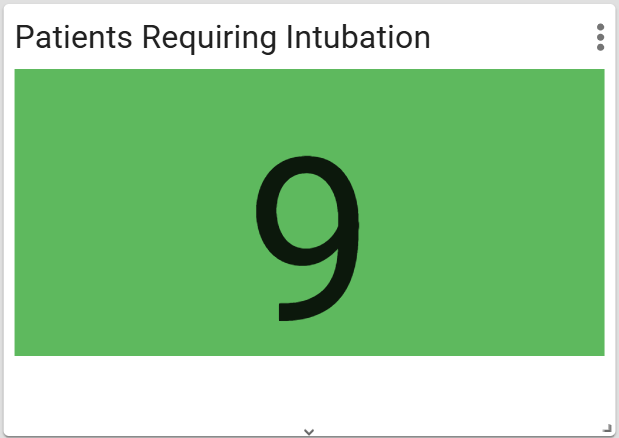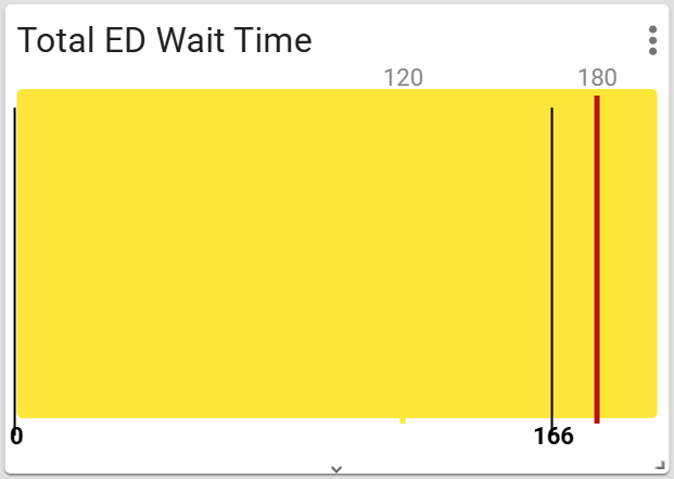 This dashboard widget displays a color-coded key performance indicator for the selected Number/Calculated status type and resource group/type. For example, the total emergency department wait time in the region. You can display this data as a box or bars: