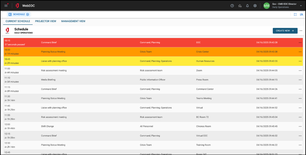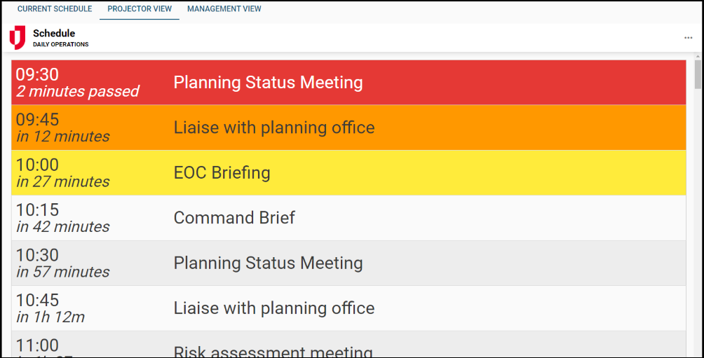 Display in the EOC: Display your operational schedule on a projector/monitor in your operations center.
