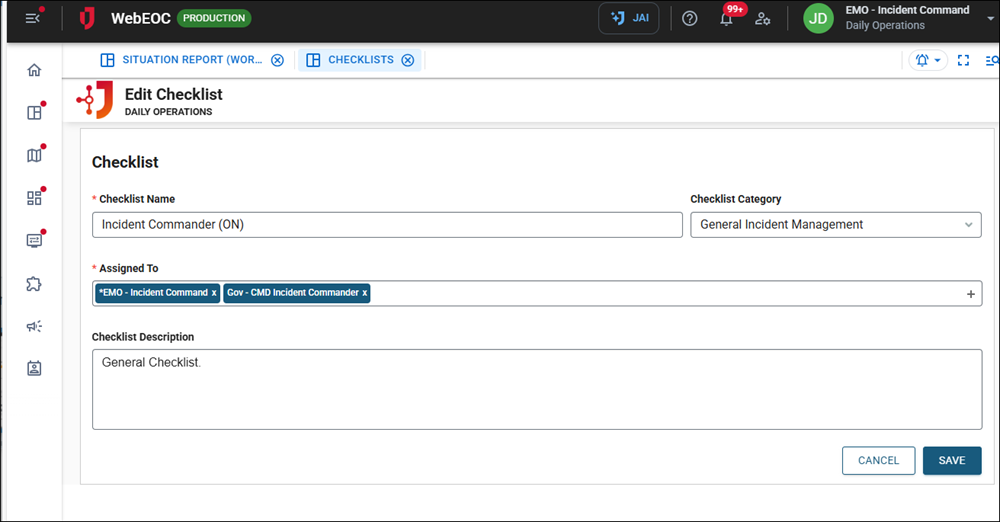 Edit a Checklist on the Checklist Templates Tab