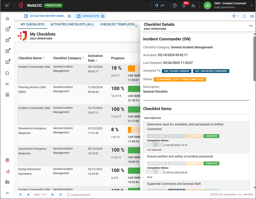 Click the My Checklist or Activated Checklists (All) tab to view your activated checklists.