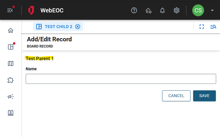 In this example, the Parent1 record is set up to use a viewlink to add the child record. |