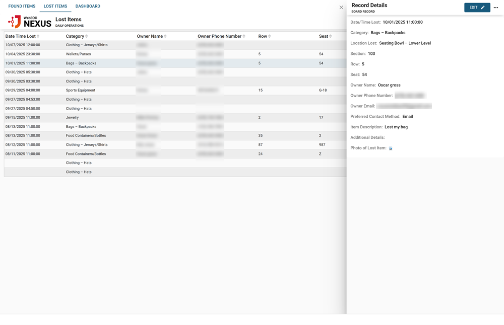 The Lost and Found board provides an organized, accountable process for managing guest-reported lost items and venue-recovered property. It enhances customer service by streamlining how staff log, track, and reconcile items, while also supporting security and compliance through detailed recordkeeping.