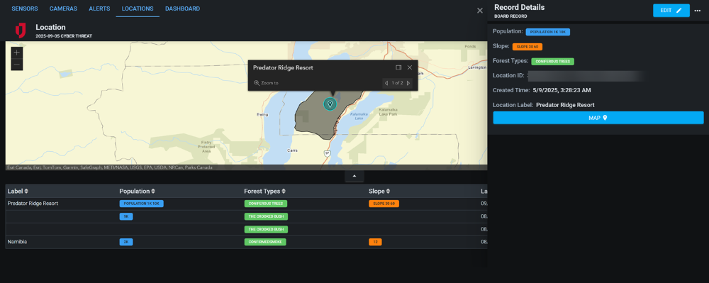 Geospatial context: Associate sensor and camera devices with precise lat/long locations, device groups, and IDs for incident mapping.