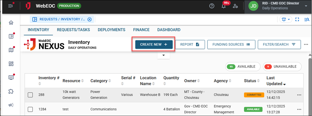 On the Inventory tab, click Create New.
