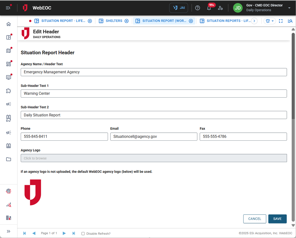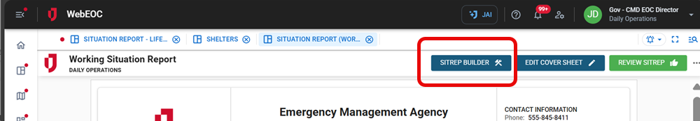 In the Situation Report Builder, click the Edit button in the top right to modify the header information.