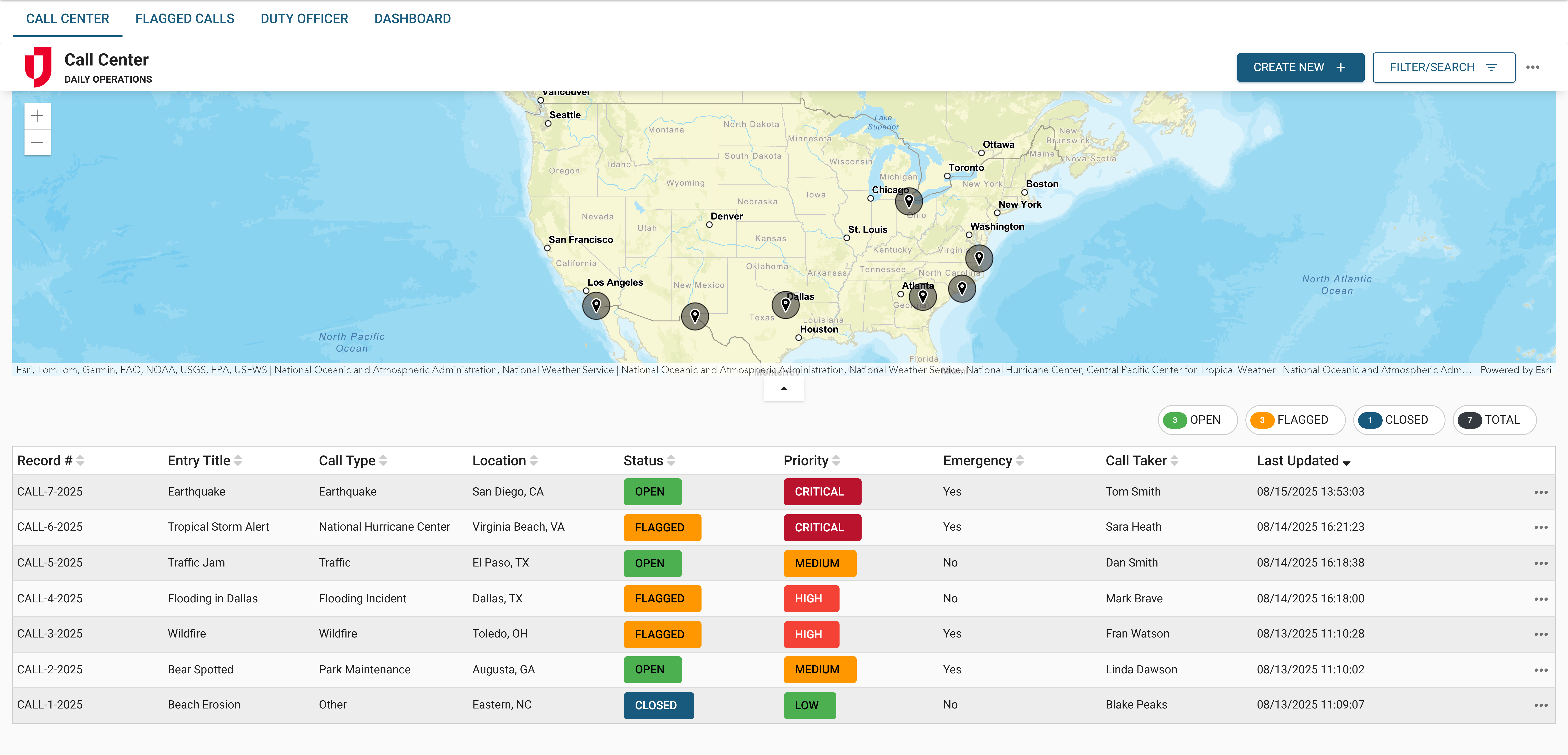 The Call Center DS board is designed to enhance coordination, documentation, and decision-making within emergency or non-emergency call centers. Tailored for dynamic operational environments, it empowers call takers, supervisors, and duty officers to manage calls with precision and clarity from intake to incident resolution.