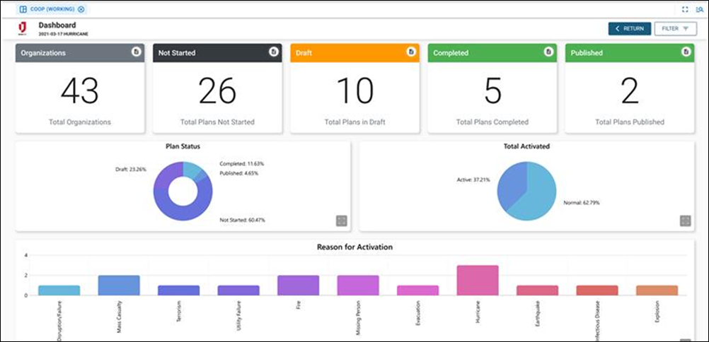 The Continuity of Operations Plan (COOP) Builder board is a powerful solution designed to help organizations create, manage, and activate continuity plans for all-hazards emergencies. Built with flexibility and usability in mind, the COOP Builder provides structured templates, streamlined workflows, and intuitive dashboard insights to ensure plans are comprehensive, actionable, and easy to maintain.