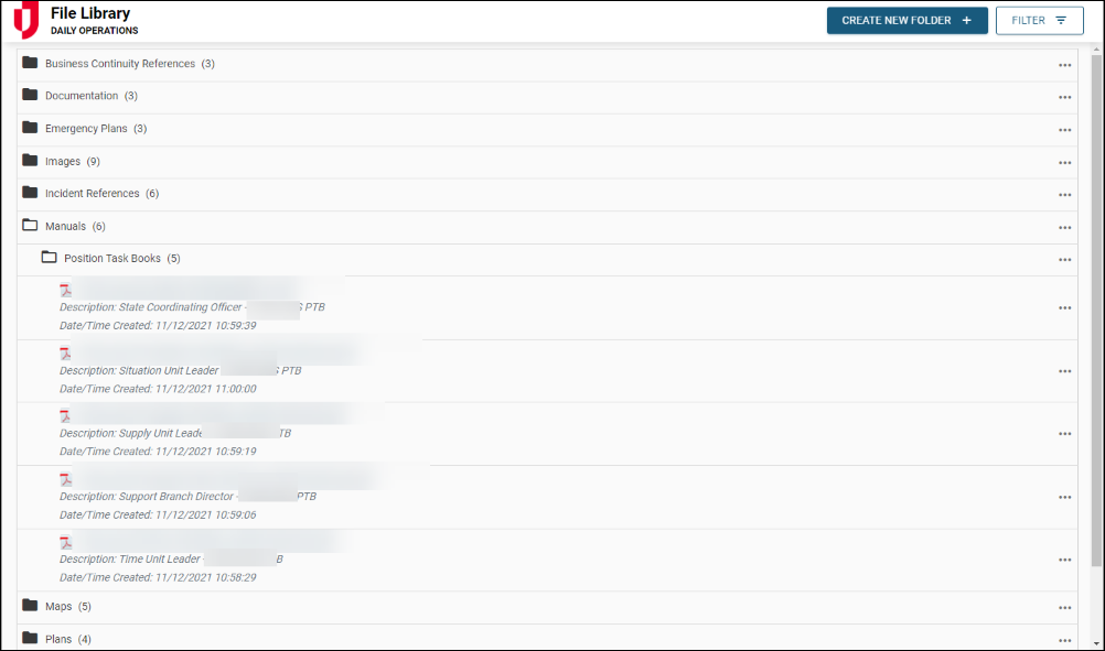 The File Library board serves as a centralized repository for storing and sharing important documents, plans, and resources that are not tied to a specific incident. It allows teams to organize files in a structured folder system, ensuring users can access critical information when needed.