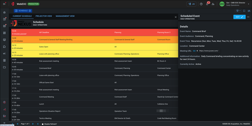 Display in the EOC: Display your operational schedule on a projector/monitor in your operations center.