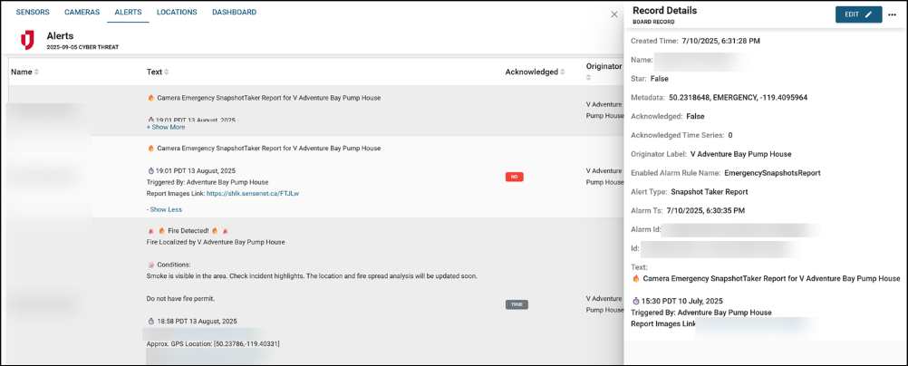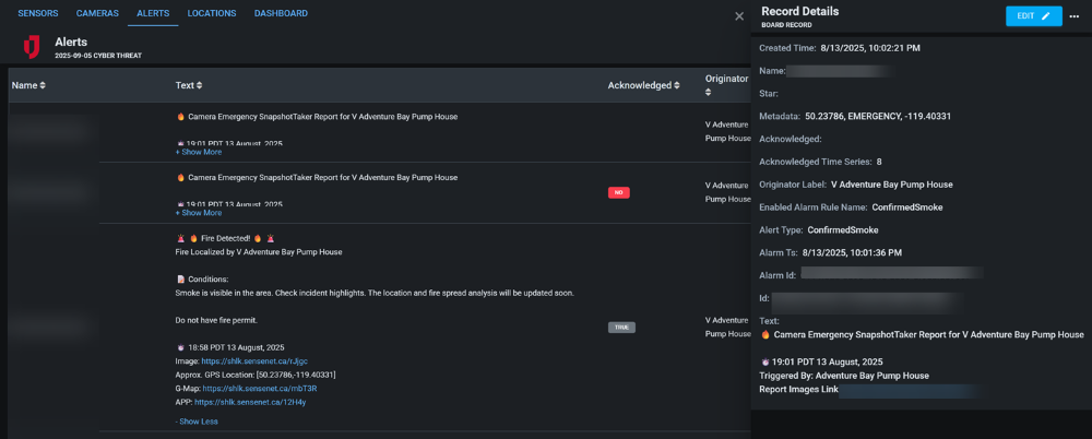 Camera integration: Connect to SenseNet camera feeds for automated smoke detection and emergency snapshots, with support for thumbnails, expiration dates, and public sharing links.