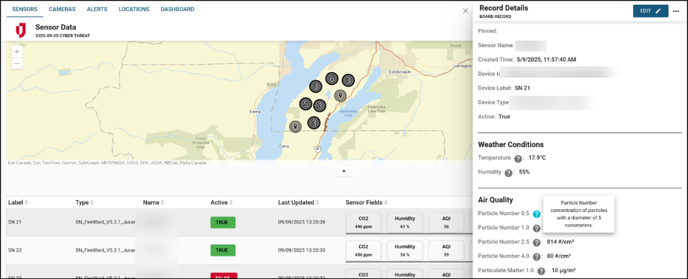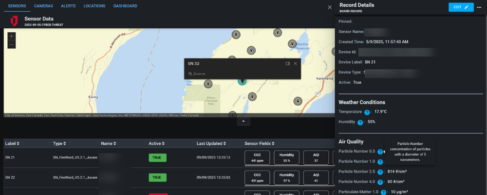 This board supports EOCs, emergency managers, corporations, and field responders with actionable data that can be tied directly to WebEOC Nexus records. The combination of environmental sensors, particulate monitoring, and camera-based smoke detection helps identify wildfire threats earlier and with greater accuracy—supporting faster, more coordinated responses.
