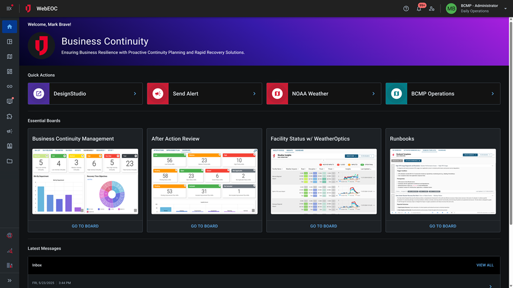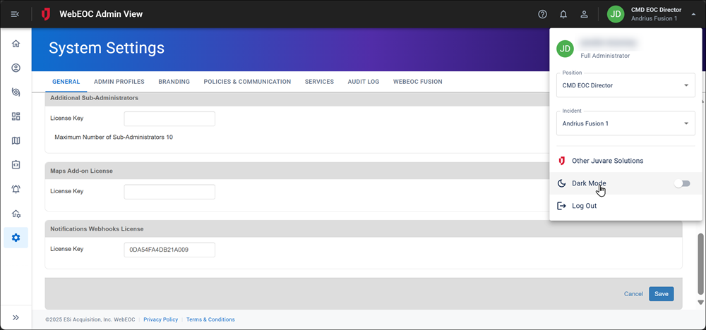 WebEOC Nexus can be viewed using dark mode.